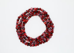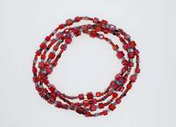 Rote Glasperlen und silberfarbene Hämatitwürfel