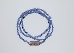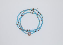 Hellblaue Glasperlen, Süßwasserperle und silberfar