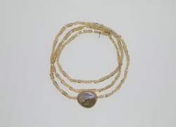 Goldgelbe Glasperlen und Hämatit