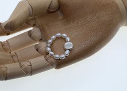 Weiße Süßwasserperlen mit mattiertem Silberelement